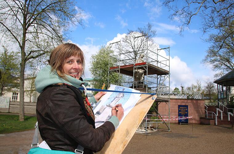 Die hat Restauratorin Heike Wolter von der Firma "Pro-Denkmal" bereits vorbereitet: Zentimeter für Zentimeter suchte sie Statue und Sockel ab. "Ich erfasse, was alles zu machen ist, dann legen wir in Absprache mit dem Landesamt für Denkmalpflege den weiteren Fahrplan fest." Rund fünf Prozent der Oberfläche seien schadhaft, schätzt die Expertin. Zu erkennen sei auch, dass der Marmor schon mehrfach ausgebessert wurde. Aber: "Wenn ein intakter Riss-Verschluss da ist, nehme ich das nicht auf", verweist Heike Wolter darauf, dass nicht alles neu gemacht werde. Zudem sei natürlich eine gründliche Reinigung vorgesehen.