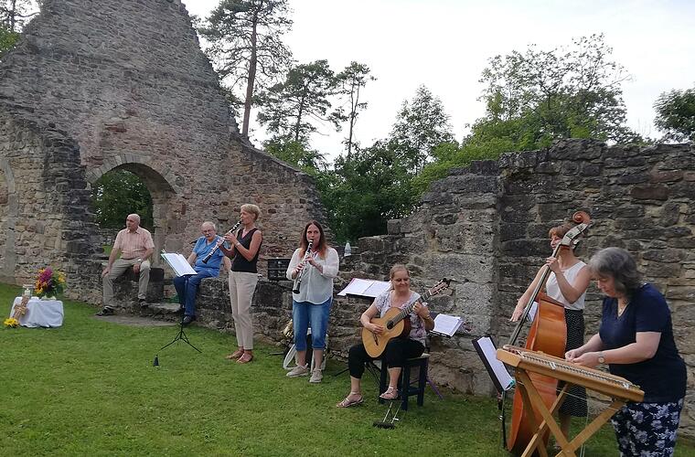 Wie sich das anhört, erfuhren die Besucher der Bergzeit auf dem Münnerstädter Michelsberg. Die Andacht nutzten die Scharadwanzen, um einmal wieder vor Publikum zu spielen Der Auftritt am Michelsberg war für die fünf Frauen auch ein Testballon, wie ihre Musik überhaupt ankommt. Für die Andacht selbst habe man die eher ruhigeren Stücke aus dem Repertoire ausgewählt, erklärt Birgit Döhler. Im Anschluss daran wurde es fränkisch-deftiger. Die Resonanz sei überwältigend gewesen, erklärt Birgit Döhler. "Wir sind total happy".