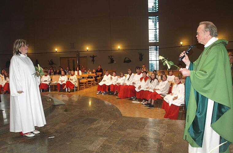 Die einzelnen Beispiele charakterisierten Frau Marx in ihrer netten, freundlichen Art, ihrer Bereitschaft, für jeden da zu sein, sowie in ihre Kreativität für eine offene Kirche, von der sich jeder angenommen fühlen sollte. Für die Ministranten erinnerten Natascha Räder und Jasmin Weingärtner an lustige Begegnungen.