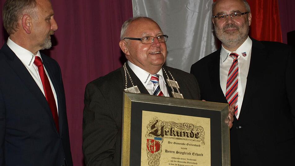 Feierlicher Schlussakkord für Siegfried Erhard: Nach 36 Jahren, davon 24 als Erster Bürgermeister, trat er vom Podium der Gemeindepolitik ab. Ihm zollten viele Gäste Respekt für seine Leistungen, die bleibende Spuren hinterlassen werden. Als Zeichen der Wertschätzung wurde Siegfried Erhard der Titel "Altbürgermeister" verliehen.