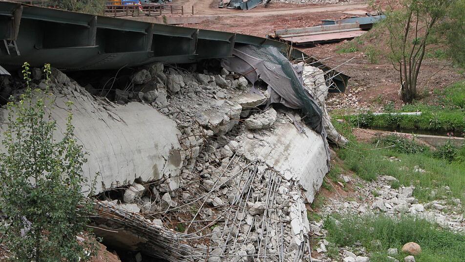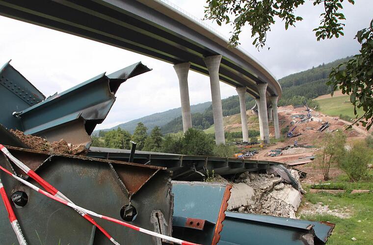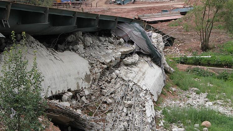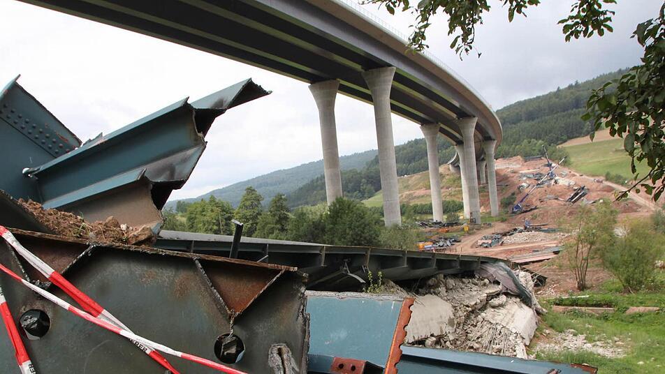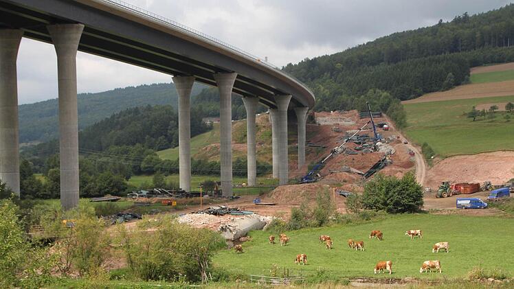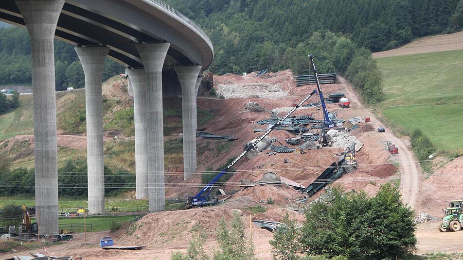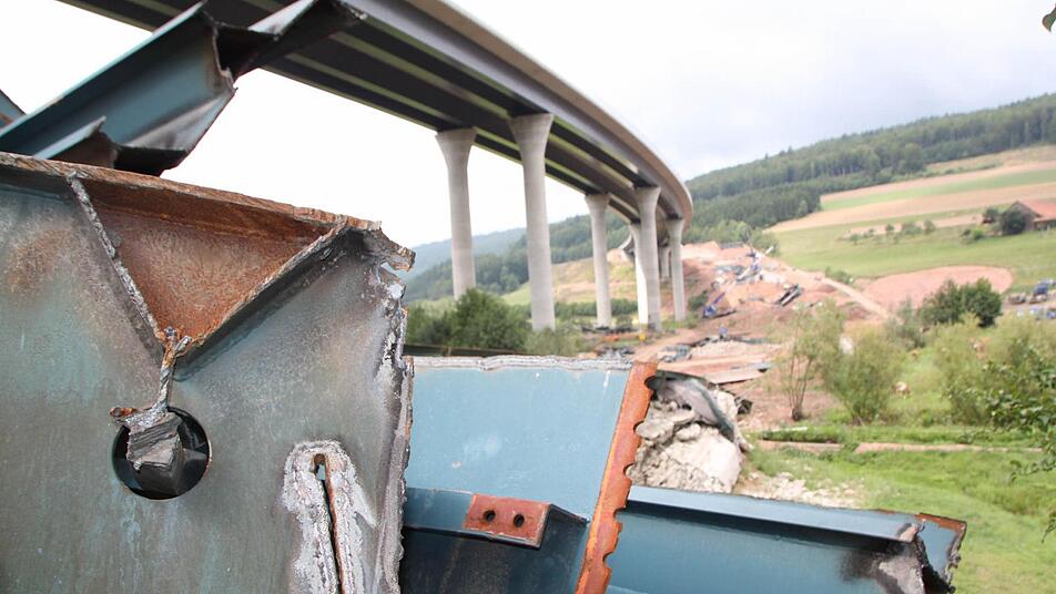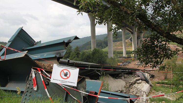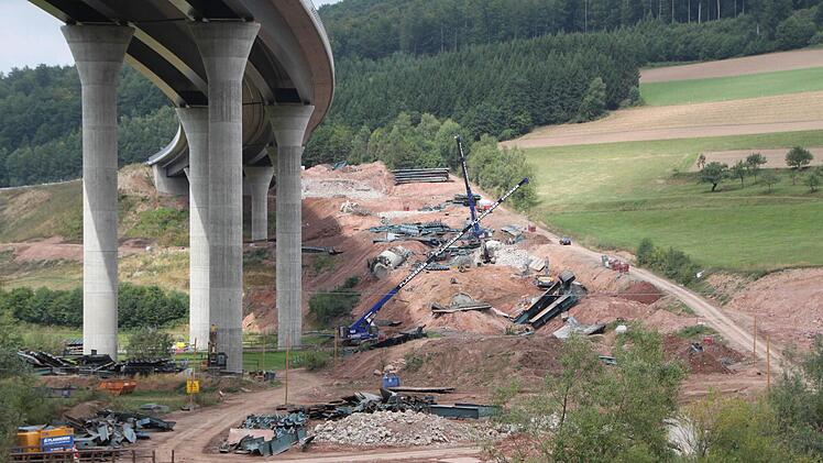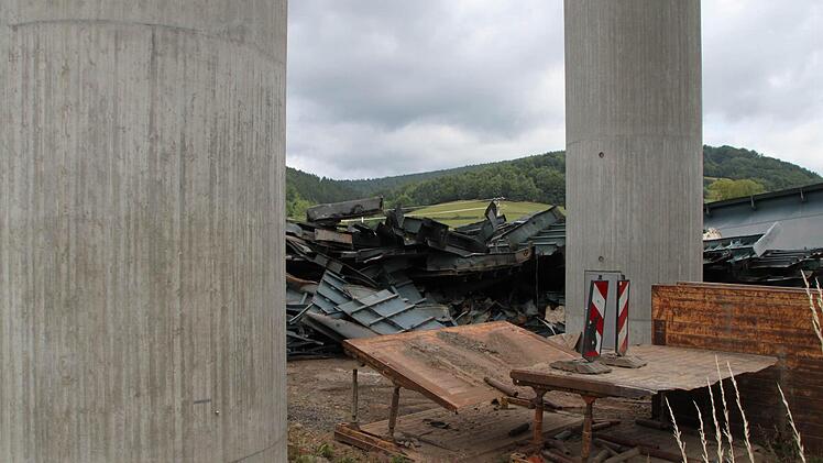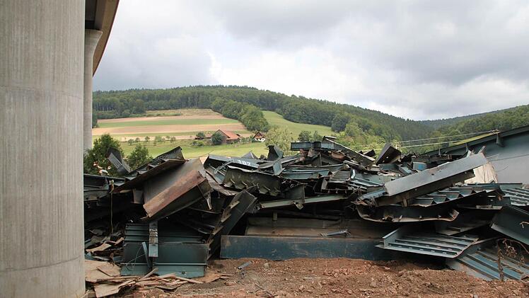 Bisher stören die Schrottberge am Rande der Baustelle nicht. Plannerer rechnet damit, dass Ende September wieder damit begonnen wird, das Material abzufahren. Bis dahin zerkleinern die Arbeiter die größten Teile. Auf der neuen Sinntalbrücke merken die Autofahrer kaum, was unter ihnen passiert. "Es sind immer mal wieder kleine Sachen zu machen", berichtet Bauleiter Hartmut Metz, "aber im Prinzip läuft der Verkehr auf der Brücke normal."