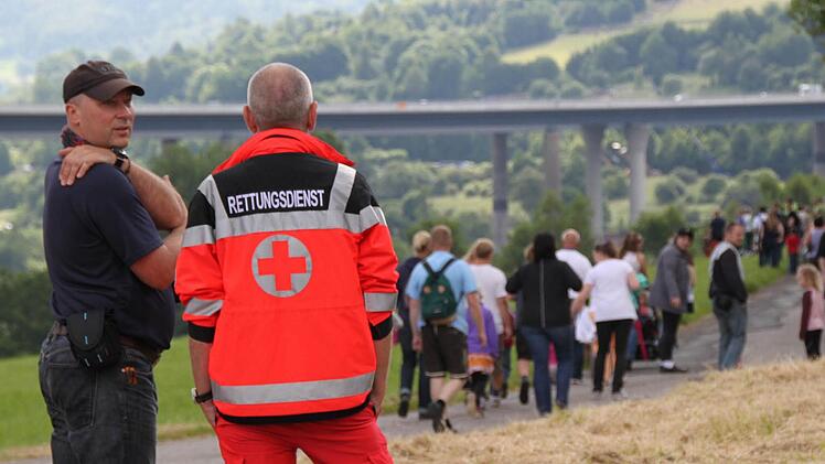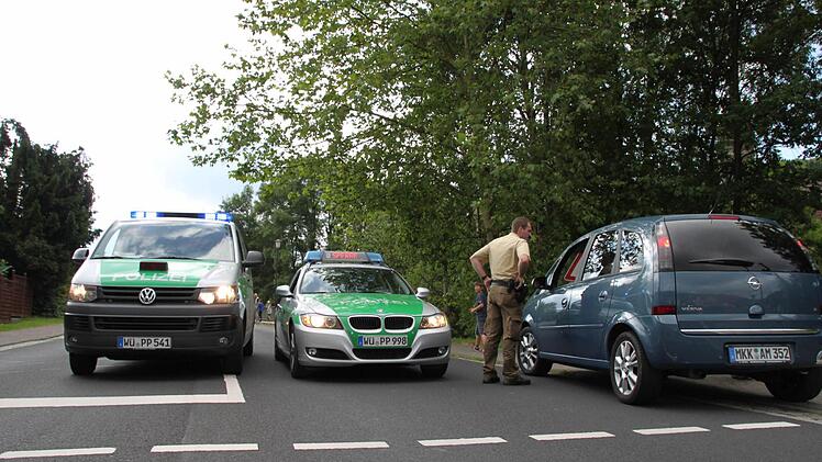 Auch die Brückenauer Sicherheitswacht ist im Einsatz. Außerdem halten die Nachbardienststellen insgesamt vier Streifen an den Dienstbereichsgrenzen in Reserve. Von den Feuerwehren sind 16 Kameraden im Einsatz, informierte Kreisbrandinspektor Marco Brust. Der Einsatz ist weder für die Feuerwehr noch für die Polizei alltäglich.