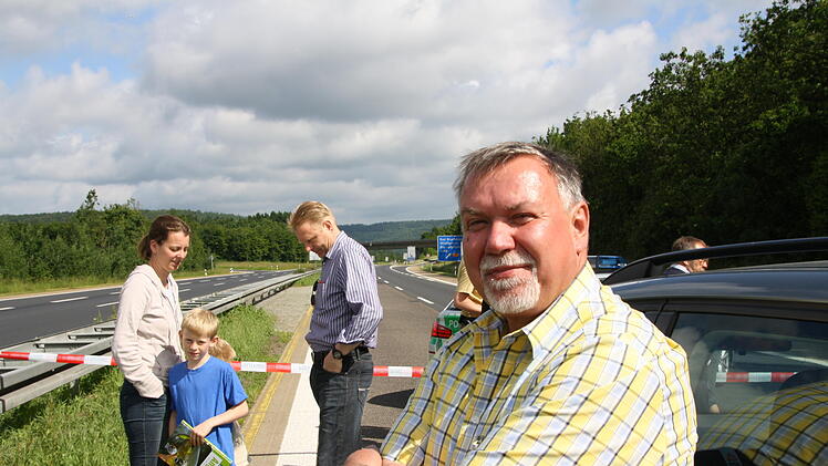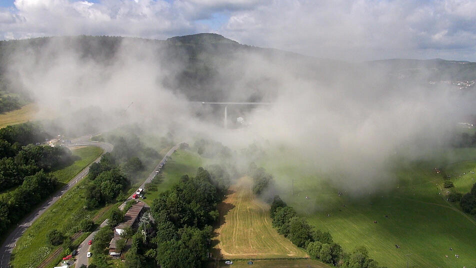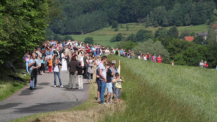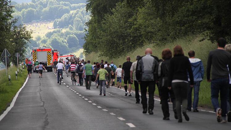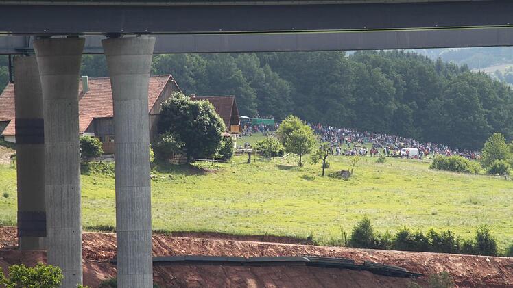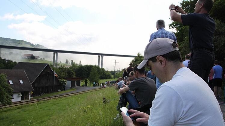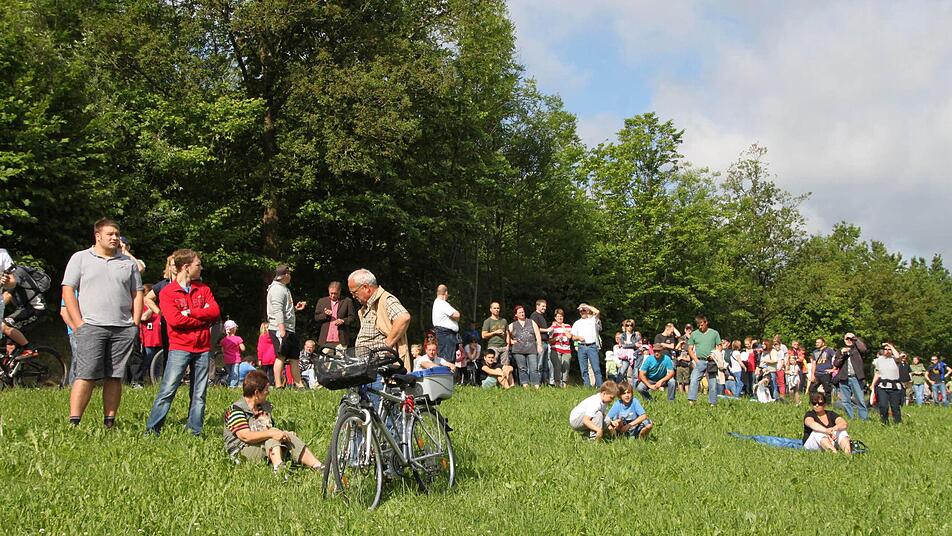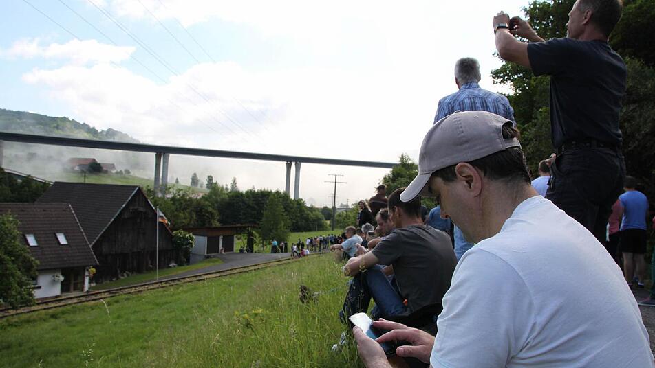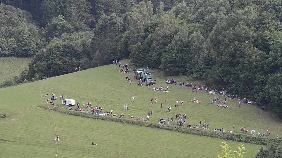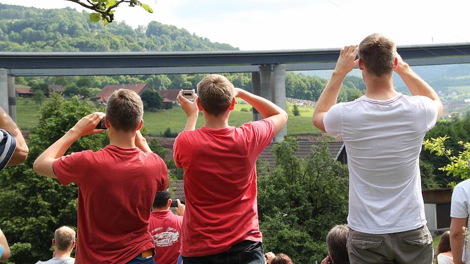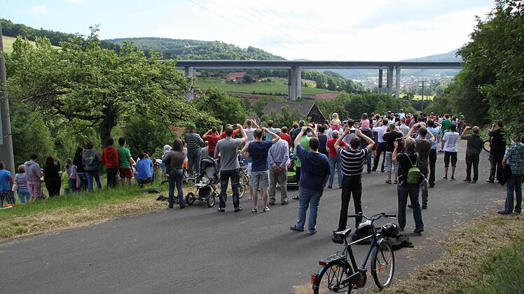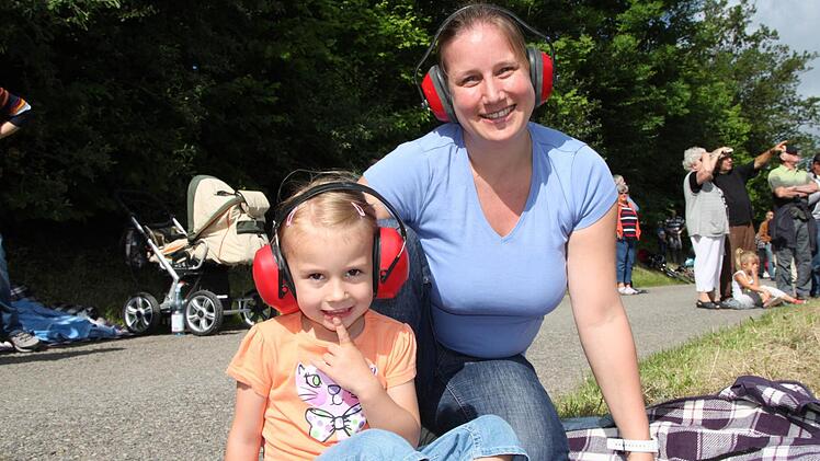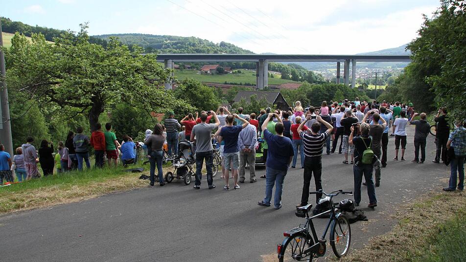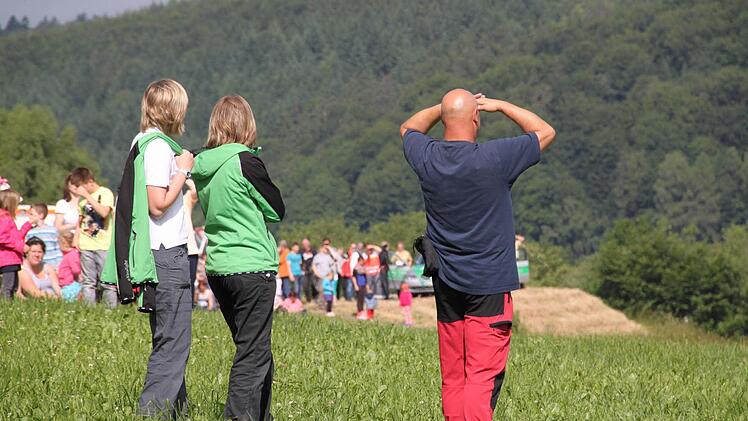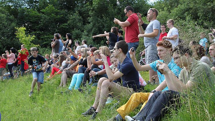 Voller Spannung verfolgen tausende Zuschauer das Großereignis. "Ich bin vor lauter Aufregung schon um 6 Uhr aufgewacht", erzählt Regina Dietrich aus Brückenau. Ihr Sohn hat die Nacht auf der Riedenberger Seite gezeltet. Da, wo man den besten Blick hat. Aber Regina und Alex Dietrich zogen lieber einen Morgenspaziergang vor. "Wir waren um 8 Uhr das erste Auto auf dem Parkplatz am Schulzentrum Römershag", erzählt er. Glück gehabt, eine dreiviertel Stunde später war schon jeder Platz besetzt.