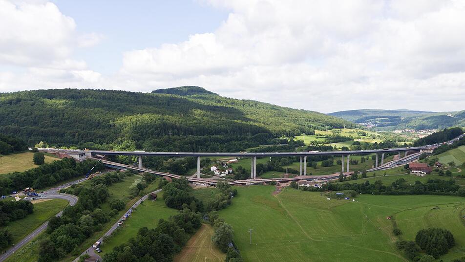 Unmittelbar nach der Sprenung ist Metz mit seinen Leuten auf der Baustelle unterwegs und schaut nach, ob die neue Brücke etwas abbekommen hat. Sie müssen wohl nichts gefunden haben, denn die Autos rollen schon wieder über die neue Brücke. Sie steht also noch. Die Polizei hatte aus Sicherheitsgründen die Fahrzeuge auf der Autobahn vor den Anschlussstellen Bad Brückenau/Volkers und Bad Brückenau/Wildflecken angehalten.