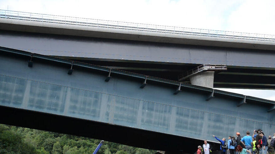 Von der Bundesstraße aus verdeckt die neue Autobahnbrücke den Blick auf das alte Bauwerk. Hier liegt auch das Baubüro, von dem aus Hartmut Metz die Bauarbeiten seit dem Frühjahr 2009 begleitet. Metz steht zusammen mit seinen Mitarbeitern von der Autobahndirektion Nord etwas abseits. Er glaubt nicht, dass der neuen Brücke etwas passiert. Zu akribisch haben die Fachleute gearbeitet, das Szenario immer wieder durchgerechnet. Trotzdem. "Ein Rest-Risiko bleibt", pflegte Metz vor der Sprengung zu sagen.