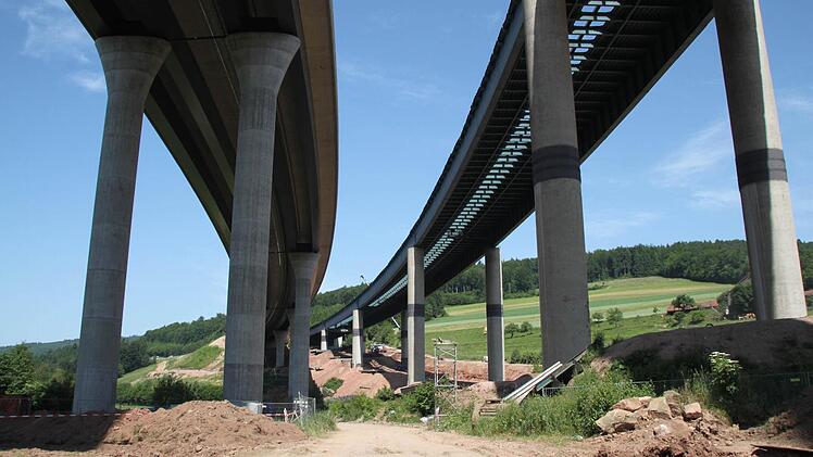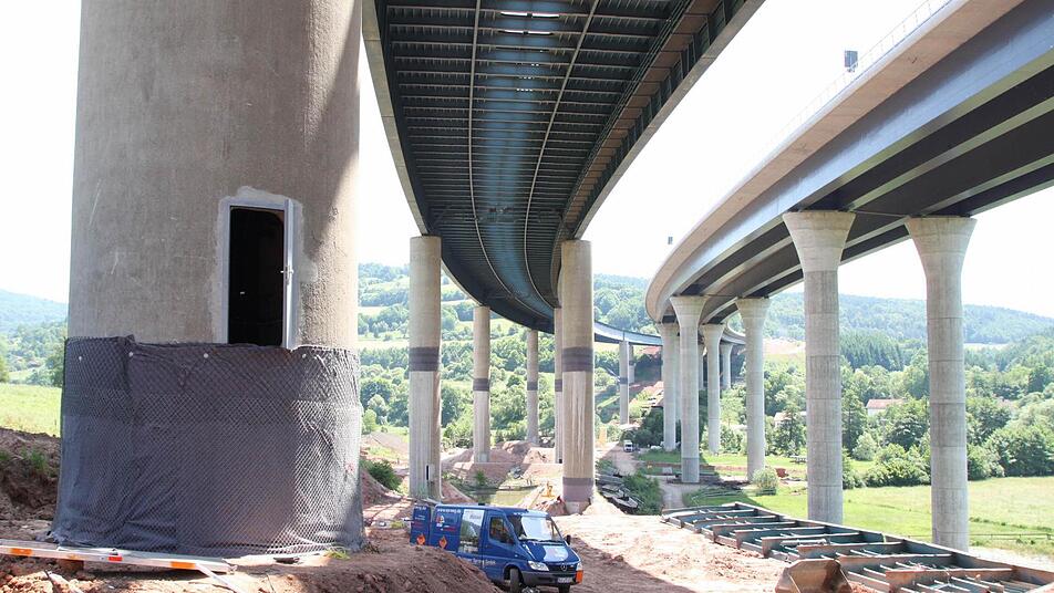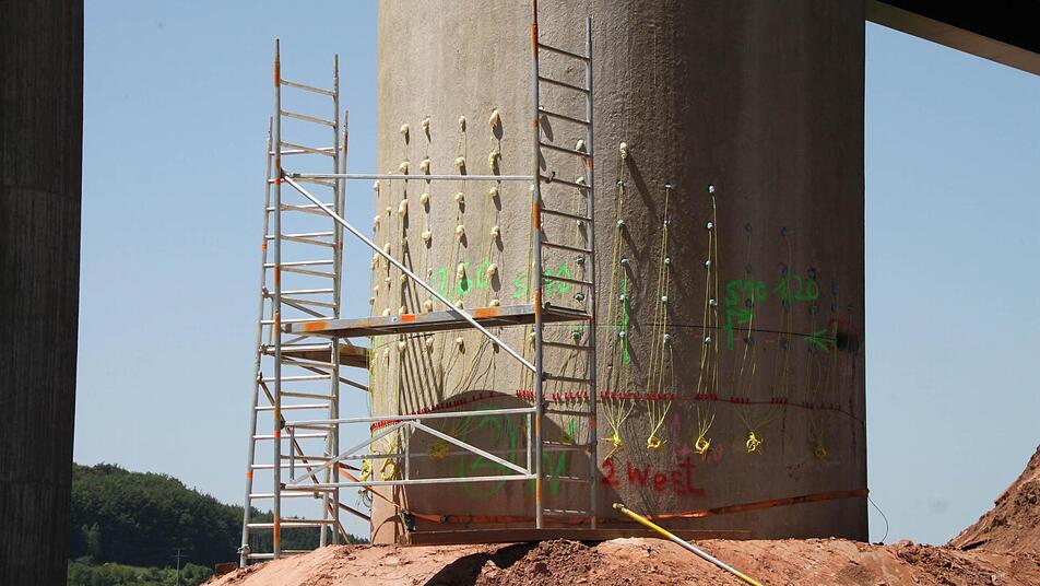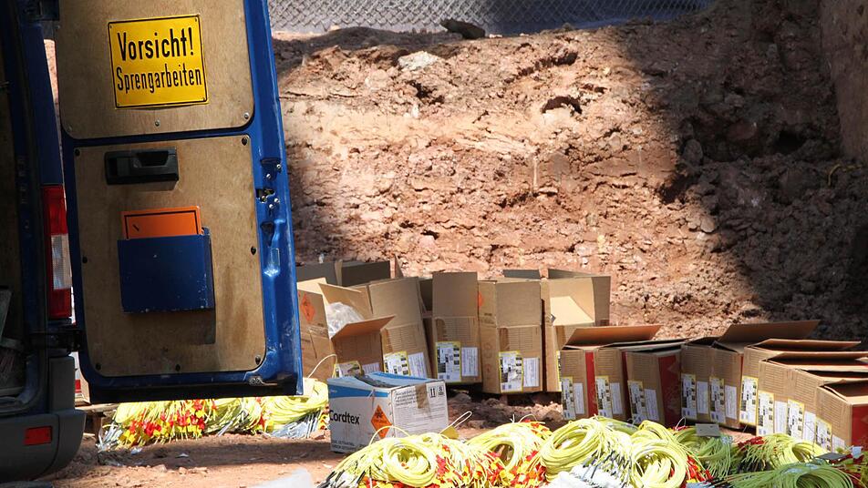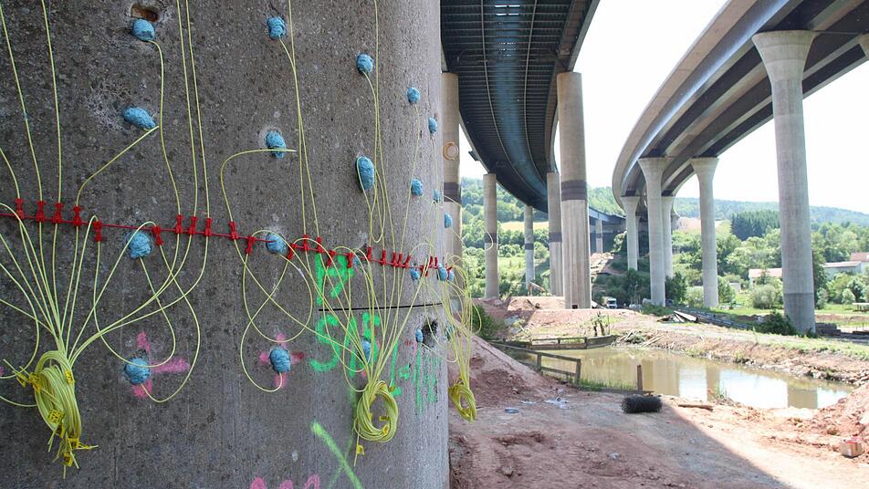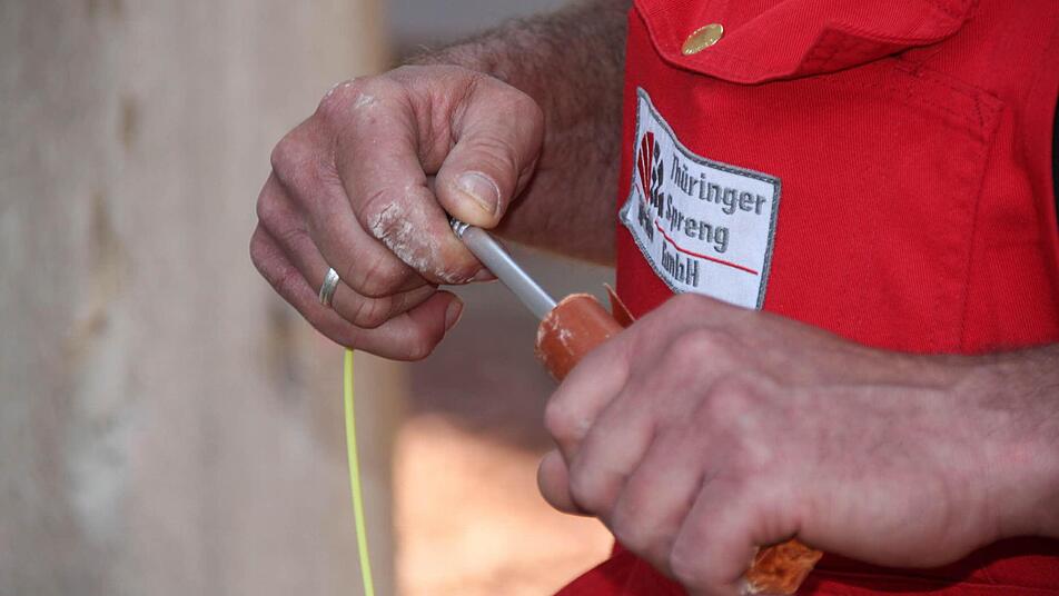 Es ist heiß auf der Baustelle unter der Sinntalbrücke. Staub wirbelt auf, wenn die Lkws über die Piste fahren oder die Bagger die nächste Ladung Erde auf die Fallbetten schütten, die die Brücke abfangen sollen. Unter einem Pfeiler steht ein Transporter. Er hat unscheinbare Kartons an Bord. Gelbe Kabel - es sind Zündschläuche - liegen am Boden. Und irgendwo dazwischen steht Michael Schneider. Er ist der Sprengberechtigte - oder Sprengmeister, wie der Volksmund sagen würde - und dienstältester Mitarbeiter der Thüringer Sprenggesellschaft.