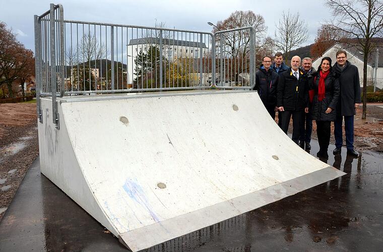 Mit neuer Ausrichtung präsentiert sich jetzt der Bad Kissinger Skaterplatz zwischen Kasernenstraße und Sinnbergpromenade. Da die Stadt laut Stadtratsbeschluss vom Oktober einen Teil des dortigen Geländes, direkt unterhalb der Polizeiinspektion, für eine weitere Gewerbeansiedlung verkauft hat, musste die Anlage umgestaltet werden. Wie Oberbürgermeister Kay Blankenburg in einer kurzen Ansprache ausführte, "bleibt die Bahn so groß wie sie war, es wurden lediglich 270 Quadratmeter der geteerten Fläche oben weggenommen und in südlicher Richtung wieder angesetzt". Neue Geräte kamen keine hinzu, aber die Jugendlichen wurden in die Planung mit einbezogen und konnten mitentscheiden, wo welche Geräte nun stehen werden. Auch wenn sich hier etwas ändere, so solle dies nicht auf Kosten der Jugendlichen gehen, sagte das Stadtoberhaupt.