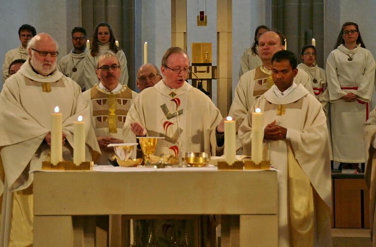 "Wie im Lukas Evangelium zum Ostermontag, das den Gang nach Emmaus vor den Toren Jerusalems beschreibt, mache ich mich auf den Weg. Und wie die Jünger mit Jesus, ohne ihn zunächst zu erkennen, eine Weggemeinschaft gebildet haben, war ich in den vergangenen gut 10 Jahren gemeinsam mit den Gläubigen unterwegs, die ich nun verlassen muss, ohne genau zu erkennen, was mich erwartet". So beschrieb Dekan Thomas Keßler seine Berufung zum neuen Amt als Generalvikar der Diözese Würzburg. "Der Pfarrer geht, die Gemeinde bleibt und die Botschaft bleibt" machte der neue Stellvertreter des Bischofs in der Herz-Jesu Kirche den Gläubigen Mut. Diese Botschaft der Freude nehme er mit in seine neue Aufgabe.