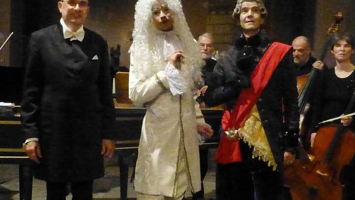 Das Außergewöhnliche an diesem Abend war aber, dass hier nicht nur mitreißend musiziert wurde, sondern dass es gelang, ein wenig von dem Eindruck einer Barockoper durch die Wirkung von prächtigen Kostümen und den Einsatz einer hochstilisierten Gestik und Mimik in den kargen Kirchenraum zu transportieren.