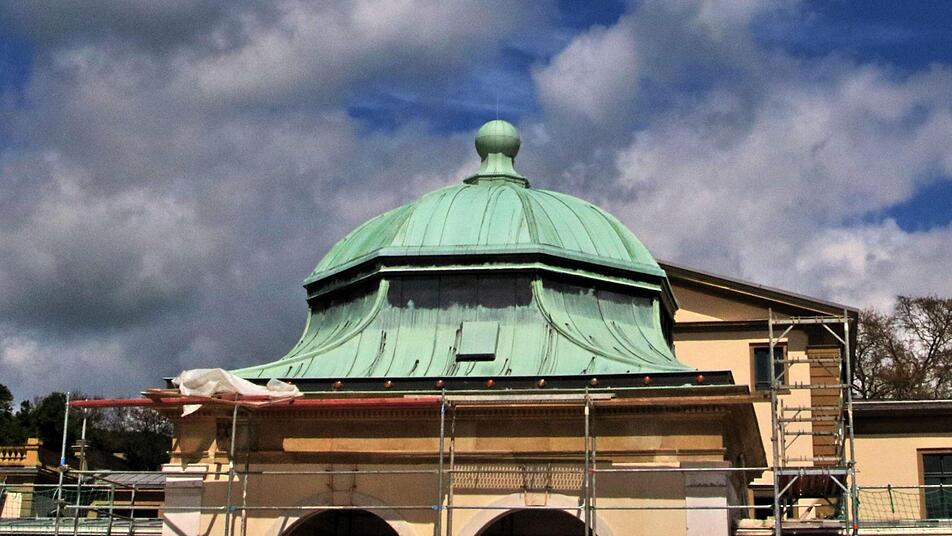 Zwei "fast futuristische Gebäude" im Innenhof? In der Tat, die Anbauten sehen ziemlich nach Mussolini-Stil aus. Aber nachdem man das Luitpoldbad schon mit dem Hochwassersteg, der mitten in die Schauseite knallt, und den seltsamen Flügeltüren zu Spielbank und "Le Jeton" verhunzt hat, kommt es darauf auch nicht mehr an.