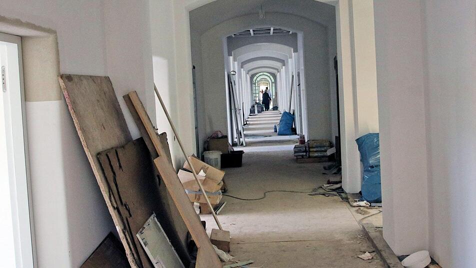Schon in zweieinhalb Monaten sollen die eigentlichen Bauarbeiten erledigt sein. Die Besucher sahen aber, dass bis dahin noch viel zu tun ist. Die nicht endenwollende Besucherschlange marschierte vorbei an einem riesigen Zahl von von Farbkübeln, Mörteleimern, Säcken mit Gips oder Montageschienen. Abdeckfolien und -Platten lagen noch überall zum Schutz der Fußböden auf dem Boden. In den Fluren und in den Büros hingen die Kabel von den Decken und aus den Wänden. "Ende Juli sollen die Bauarbeiten abgeschlossen sein. Wenn es dem Ende zugeht, dann geht es halt immer drunter und drüber, dann sind alle Firmen gleichzeitig da" meinte dazu der leitende Baudirektor Erwin Full, Abteilungsleiter im staatlichen Bauamt in Schweinfurt und dort zuständig für die Staatsbäder im Landkreis