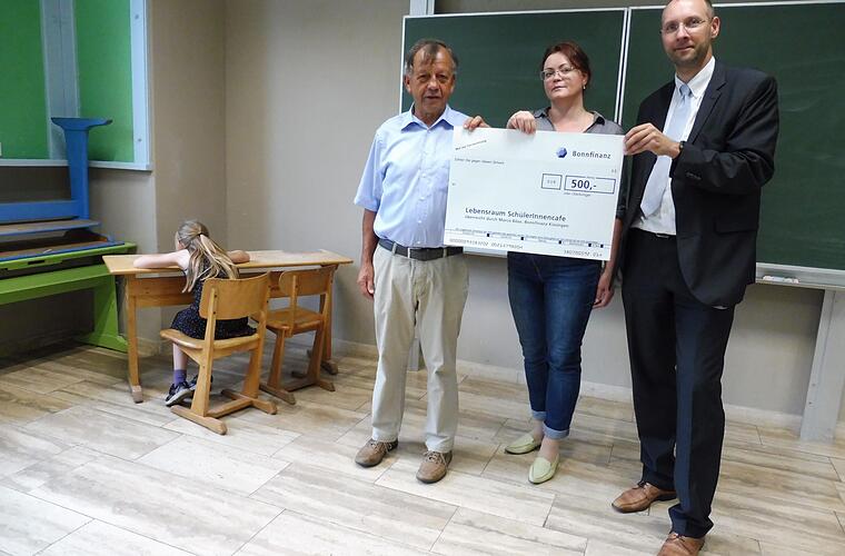 Eine Spende vom Finanzberatungsunternehmen "Bonnfinanz" ging an den Verein "Lebensraum SchülerInnencafé".