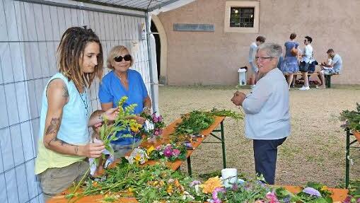 "Auch das Blumenkränze flechten kam sehr gut an", freute sich Annette Späth. Hierfür war, wie schon seit vielen Jahren, Waltraud Keller aus Rieden vor Ort. Besucher jeden Alters flochten gemeinsam und hatten viel Spaß dabei.