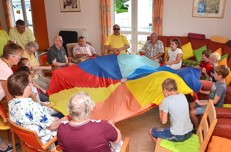 Zunächst wurde mit den Kindern besprochen, was man gemeinsam mit den Senioren machen könnte. Die Ideen sprudelten nur so: Spielen, Singen und Basteln wurde genannt. Besonders das Bepflanzen von Blumenkästen und das Spiel mit dem großen Schwungtuch machte allen viel Freude. Im Verlauf des Projekts entstanden immer neue Ideen, die die Generationen verbanden.