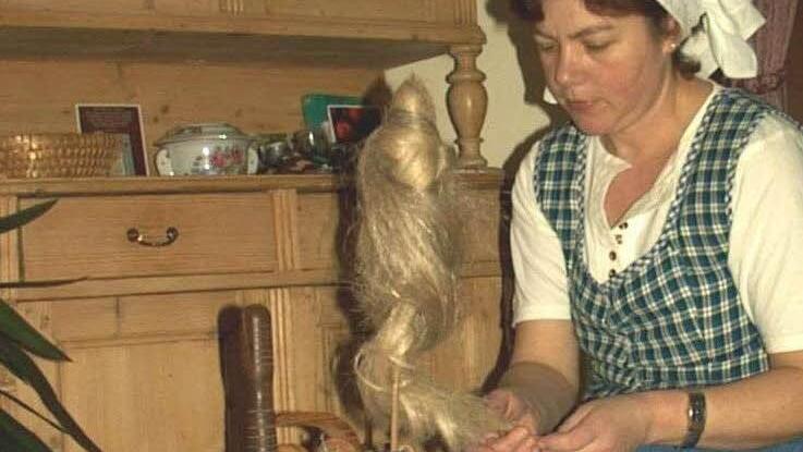 "Zum Kaufen war man einfach nicht in der Lage", erzählt die Hassenbacher Seniorin Amanda Kaufmann. "Wo es Schafe gab wurde auch mit dem Spinnrad Wolle gesponnen.