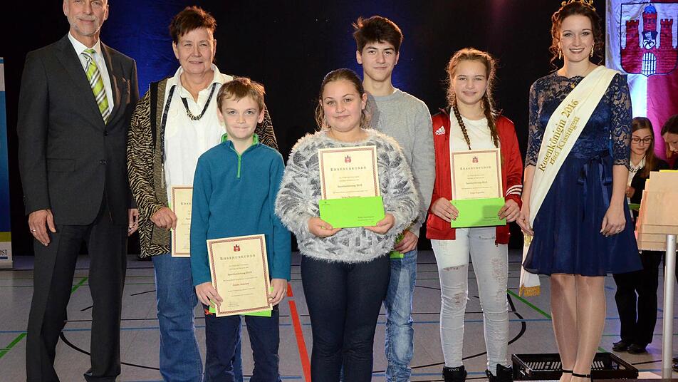Vor den Ehrungen durften sich die Jüngsten des TSV, der die Veranstaltung gemeinsam mit der Stadt organisiert hatte, präsentieren. So traten nacheinander die Turnerinnen des TSV, die Judoka, die Aikido-Käpfer und erstmals auch die Mitglieder der Boxabteilung auf. Als "alte Gäste" kamen dann die Breakdancer "Too Extreme" aus Würzburg, die gerade die jüngsten Sportler zum Mitmachen animierten.