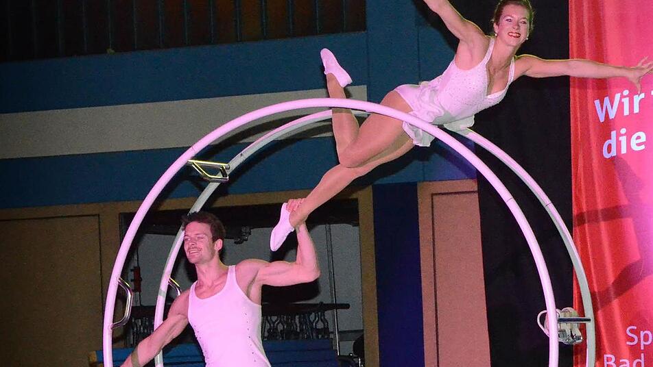 Das holländische Weltmeisterpaar Laura Stullich und Boy Looijen begeisterten sowohl mit ihrer Partnerakrobatik wie mit dem Rhönrad, wo sie derzeit den Weltmeistertitel innehaben. Aber auch die beiden Jungs von "It's a man's World" zogen mit ihrer Kür am Baugerüst neidvolle Blicke mancher Besucher auf sich. Christian (Blacky) Schwarz, der erstmals durch die Veranstaltung führte, machte dies so souverän wie sein Vorgänger und stellte fest, das Bad Kissingen eine Hochburg von Kampfsportlern sein müsse, angesichts der großen Zahl von Ehrungen die diese Sportgruppe zum Teil auf internationaler Ebene eingefahren habe.