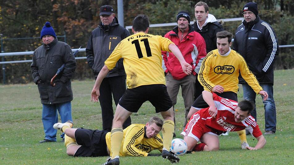 Ganz allein stand Artur Trebacz am Spielfeldrand. Brückenaus Trainer ist eben ein stiller Genießer. "Ich bin stolz auf meine Jungs. Durch den Kampf haben wir dieses Spiel gewonnen." Und das war tatsächlich eine kleine Sensation. Eine ganze Stunde hatten die Frankonen schließlich in Überzahl gespielt. Gegen einen Kontrahenten, der bis dato alle Auswärtsspiele verloren hatte, während Thulba daheim alles putzte, nur gegen Tabellenführer Großbardorf remisierte. Mit einem Dreier wären die Schwarz-Gelben zumindest für einen Tag Tabellenführer gewesen. Es blieb bei der Theorie. Von der Realität eingeholt wurde die Elf von André Betz bereits nach neun Minuten. Nach einem weiten Ball von Markus Schumm hatte die Viererkette Alexander Krämer aus den Augen verloren, der das Leder volley und mit Schmackes unter die Latte drosch.