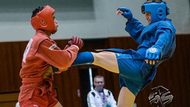 Tritt- und Schlagtechniken Philipp Graf trat im Combat-Sambo auf die Matte, wo im Gegensatz zum Sport-Sambo auch Schlag- und Tritt-Techniken erlaubt sind, sowohl im Stand als auch auf dem Boden. Der Arnshäuser hatte in seinem ersten Kampf ebenfalls einen starken Mexikaner zum Gegner, den er in einem perfekt geführten Kampf dominierte und nach Punkten 12:0 vorzeitig besiegte. Allerdings hatte der TSV-Kämpfer das Pech, in seinem zweiten Kampf gegen den späteren Vizeweltmeister Niyazmyrat Shakhmuradov aus Turkmenistan antreten zu müssen. Noch dazu in seiner unmittelbaren Kampfvorbereitung durch missverständliche Informationen gestört, gelang es dem 22-jährigen Lehramtsstudenten dennoch, viele Aktionen des Favoriten zu unterbinden und selbst gute Konter anzubringen. "Leider hatte sich mein Gegner einem starken Würgegriff quasi in letzter Sekunde entzogen, was einen Abbruchsieg für mich hätte bedeuten können", sagte Graf, der schließlich 0:12 unterlag.