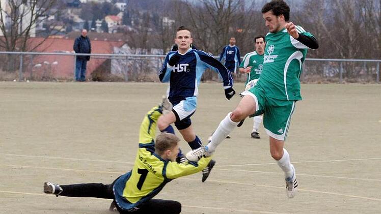 Beide Seiten traten mit dem sprichwörtlich letzten Aufgebot an. Besser ins Spiel kamen auf dem Kunstrasenplatz die Gastgeber, die dort weitermachten, wo sie in Münnerstadt aufgehört hatten. Mit schnellem Kombinationsspiel wurde das gegnerische Tor berannt. Dort bestritt mit Fabian von Gelder der Junioren-Keeper seine erste Bezirksliga-Begegnung überhaupt - er machte seine Sache prima. Beim Schuss von Andrzej Sadowski aus halbrechter Position war er aber machtlos. Besser machte es der Goalie zwei Minuten später, als er dem durchgelaufenen Alexander Flassig den Ball vom Fuß zerrte. Die Sennfelder konnten vor der Pause in der Offensive kaum Akzente setzen, SV-Torwart Bastian Reusch blieb weitgehend beschäftigungslos.