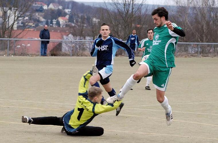Nach der Pause musste er sich allerdings bei einem Schuss des aufgerückten Innenverteidigers Stathi Sochos gewaltig strecken. Sein Gegenüber hatte Glück, dass ein Kopfball von Benedikt Lang nach Hereingabe von Stefan Glöckler am Pfosten vorbeirauschte. Glöckler war im übrigen der auffälligste Akteur auf Seiten der Grün-Weißen, der ständig die rechte Seite beackerte und dessen Vorstöße immer Torgefahr verhießen.