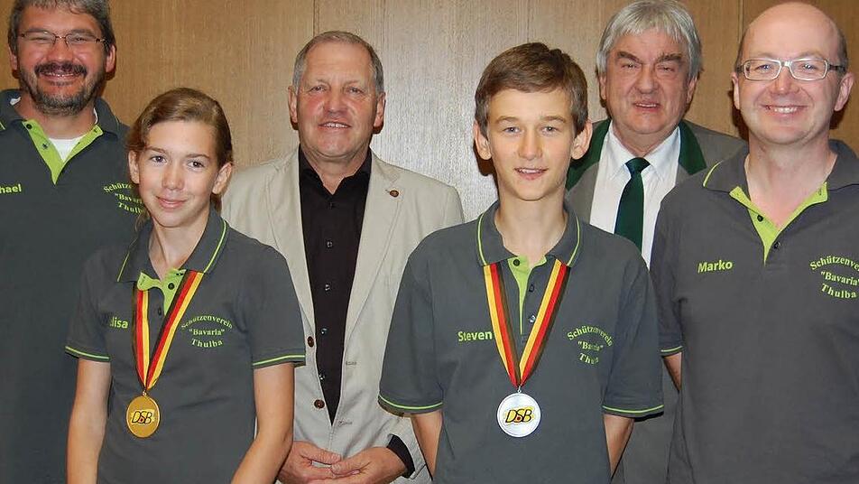"Die besten Schützen aus ganz Deutschland, und das aus einem Verein, das ist schon eine Ausnahme und ungewöhnlich. Bei solchen Leistungen kann schon Stolz aufkommen", so Trainer Marko Friedrich bei der Ehrung der neuen Deutschen Meisterin Elisa Tartler und Steven Schultz (Vizemeister) im Feldbogenschießen der Schülerklasse beim heimatlichen Schützenverein Bavaria Thulba. "Aus Unterfranken waren sechs Teilnehmer dabei und davon wiederum zwei aus den Reihen der Bavaria Thulba. Sie setzten sich wie schon bei der Bayerischen Meisterschaft mit super Leistungen durch. Hier hat sich gezeigt, dass sich gutes Training und hervorragender Einsatz auch auszahlen."
