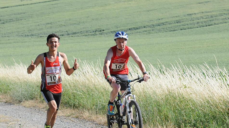 Dann durften die zahlreichen Zuschauer dem Siegerteam der Achtkilometer-Strecke applaudieren. Mit sieben Minuten Vorsprung rannten/fuhren Hans Wagner und Esmat Rezaei über die Ziellinie. Dass die beiden Bad Brückenauer gewinnen würden, war zu erwarten, denn beide TV-Sportler gehören in ihren Altersklassen zur Läuferelite. "Altmeister" Wagner wie auch sein 16-jähriger Schützling, der demnächst bei den bayerischen Juniorenmeisterschaften über 800 Meter und 1500 Meter antreten wird, trainieren fünfmal in der Woche und waren so fast schon als Profis unter den Teilnehmern anzusehen.