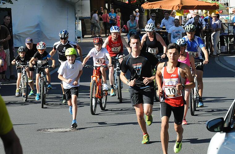 "So eine Veranstaltung, die mehr Zuspruch verdient hätte, macht einfach Spaß, weil sie abwechslungsreich ist. Außerdem bietet sie die Gelegenheit, mit einem Partner, was ja ansonsten bei Läufen fast unmöglich ist, einen gemeinsamen Erfolg zu feiern", sagte Hans Wagner. Ganz stolz über den Sieg war sein junger Partner, dessen Augen glänzten, als ihm bei der Siegerehrung eine Urkunde, eine Medaille sowie die Siegerpräsente überreicht wurden. Platz zwei belegten Linus Will/Felix Planetosch, die Wolfgang Will/Lorenz Wilm mit einem Vorsprung von knapp einer Minute hinter sich ließen. Der dritte Platz von Vater und Sohn war umso erstaunlicher, weil Wolfgang Wilm durchlaufen musste, da ihm das Fahrrad des neunjährigen Lorenz, der durchstrampeln musste, zu klein war. "Das war ganz schön hart", bestätigte der Junior, der sich mit Gummibärchen rasch regenerierte.