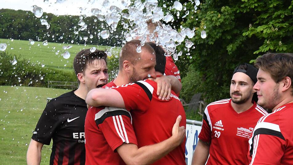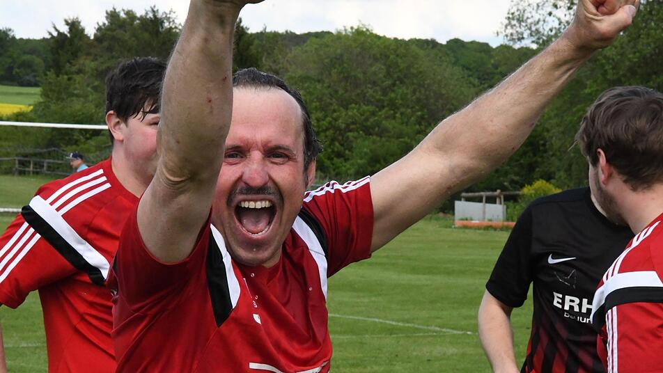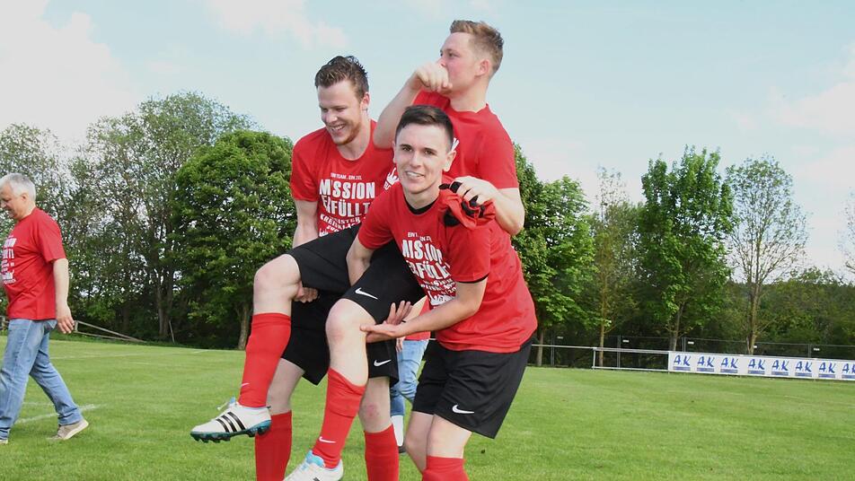 Das 1:1 gegen die Burgläurer hielt die Haberle-Elf zumindest auf Abstand, als "Spiel aller Spiele" wurde dann die Partie in Waldberg angekündigt. Dort geriet der spätere Meister in Rückstand. "Doch was die Mannschaft dann an Charakter und Moral gezeigt hat, war klasse", so ihr Trainer gleich nach dem Abpfiff. Ihm selbst konnte dabei ein "goldenes Händchen" bescheinigt werden. Denn auf die Idee, mit Dominik Reiter einen etatmäßigen Torhüter nach einjähriger Verletzungspause und großem Trainingsrückstand in die Sturmmitte zu stellen, muss man erst einmal kommen. Dieser dankte die Einwechslung mit den zwei entscheidenden Treffern. Ab da verteidigten die Schmitt-Mannen den Punktevorsprung über die restlichen Begegnungen und erlebten mit Wohlgefallen, wie sich die Verfolger aus Waldberg und Burglauer binnen zwei Wochen gegenseitig die Punkte abnahmen. Mit dem 3:2-Erfolg in Maßbach grüßten die FCler schließlich als Meister.