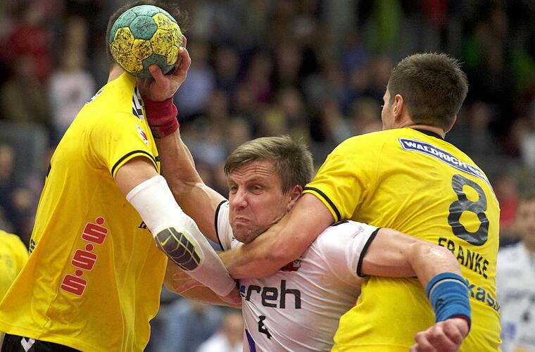 Es folgte eine zerfahrene Phase auf beiden Seiten, was auch darin begründet war, dass die thüringischen Unparteiischen im Minutentakt wechselweise Zeitstrafen verhängten. Und so für ein frühes Aus von Konstantin Singwald (Disqualifikation nach der dritten Zeitstrafe/37.) sorgten. Was dazu führte, dass der früher so gefürchtete Innenblock mit Franziskus Gerr und Valkovskis sich unplanmäßig, aber effektiv den Gelb-Schwarzen entgegenstellte. Dass Fabian Tatzel binnen vier Minuten zwei Strafwürfe parierte, nervte den Gast zusätzlich.