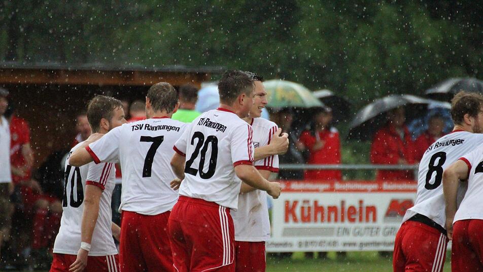 Da war schon klar, dass die Grün-Weißen nun mindestens drei Treffer für ein Weiterkommen schießen müssten. Doch ihre Angriffsaktionen blieben recht dünn, die TSV-Deckung hatte die beiden Angreifer Stefan Wich und James Galloway ordentlich im Angriff, weswegen ihr Keeper Florian Erhard zunächst recht beschäftigungslos blieb. Dessen Jubel kannte keine Grenzen, als nach 20 Minuten Röder den auf der linken Außenverteidigerposition als Schultheiss-Ersatz auflaufenden Nick Schumm düpierte. Seine Vorlage fand den mutterseelenallein vor Florian Dorn auftauchenden Martin Herbig, der ohne Zögern einnetzte. "Jetzt wird es für Riedenberg knüppelhart, denn nun müssen sie schon fünf Tore schießen", rechnete der Ramsthaler Innenverteidiger Marcel Schmitt vor, eine Verlängerung war so auf jeden Fall passè. "Riedenberg hatte wohl nur noch eine Chance, wenn sie vor der Halbzeit noch ausgleichen", vermutete der Fuchsstädter Zuschauer Willibald Kippes, der aber zunächst registrierte, dass der SV-Coach nach einer halben Stunde die angeschlagenen Dominik Fröhlich und Thomas Vorndran vom Feld nahm und dafür Christoph Dorn und Nicolas Krapf auf den nassen Rasen schickte.