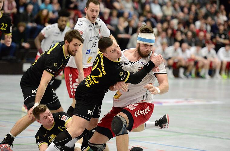 Angetrieben von Tegaday Ramos Nuez (5/1) wendeten die Gäste binnen zehn Minuten das Blatt und gingen ihrerseits mit 23:22 in Führung. Als die Spielgemeinschaft den Vorsprung auf 25:23 ausgebaut hatte (55.), bejubelten die SG-Fans voreilig den Auswärtssieg. Angetrieben von den nimmermüden heimischen Anhängern, die sich längst von ihren Sitzplätzen erhoben hatten, sorgte Gary Hines mit zwei verwandelten Siebenmetern für den Ausgleich. Dreißig Sekunden später brachte SG-Rechtsaußen Fatih Günes seine Farben wieder in Front, ehe Vilim Leskovec den Endstand besorgte (57.). Die finalen Minuten waren ein Krimi. Nach einer Auszeit spielten die Rothosen den folgenden Angriff zu lange aus, kein Akteur wollte die Verantwortung übernehmen. Schließlich musste Hines in Zeitnot zu einem Sprungwurf ansetzen, der geblockt wurde. Jetzt legte SG-Coach Tim Beckmann die grüne Karte auf den Zeitnehmertisch, um nach Wiederanpfiff registrieren zu müssen, dass sein erfolgreichster Schütze, Linksaußen Milos Kreckovic (7/2), seinen Flug schon im Kreis stehend angesetzt hatte. Zwanzig Sekunden vor dem Ende übersah Maxi Schmitt die Lücke in der gegnerischen Deckung, ehe ein weiterer Notwurf von Hines von Keeper Marius Sulzbach entschärft wurde.