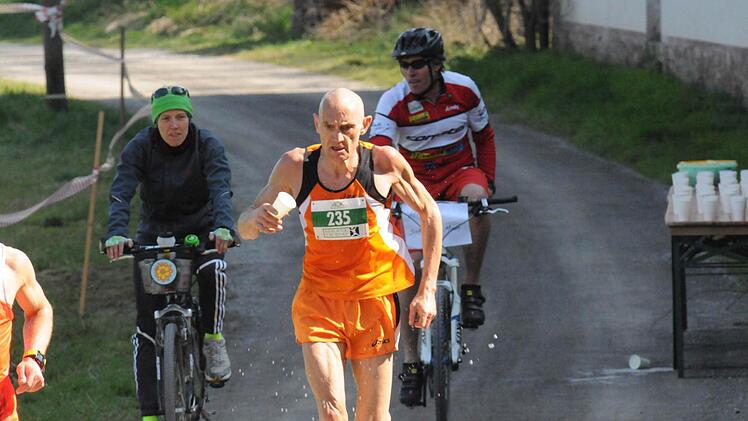 Der wissenschaftliche Mitarbeiter an der Uni Würzburg ist schnell, aber keiner, der Rekorde um der Rekorde willen jagt. "Ich wollte unter die ersten Drei kommen. Dass ich gewonnen habe und damit sogar Unterfränkischer Meister bin, ist das i-Tüpfelchen", sagt Krah, der die ersten bergigen Kilometer gemeinsam mit Sebastian Apfelbacher angegangen war. Der Marathon-Sieger des Vorjahres von der TG Kitzingen ging leicht angeschlagen ins Rennen und wurde später Gesamt-Vierter. Mit einer besseren Zeit als in 2013, was den klimatischen Umständen geschuldet war.