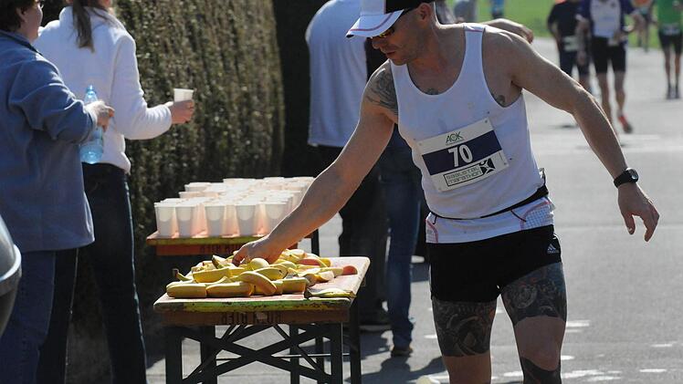 Nah dran an den Sportlern war auch Dr. Jürgen Sobtzick. Der Allgemein-Arzt war für den medizinischen Notfall eingeteilt - der nicht eintrat. "Ich bin mental angespannt", hatte der Euerdorfer zugegeben, der vom Roten Kreuz unterstützt wurde und seine komplette Notfall-Ausrüstung gepackt hatte, inklusive zweier Defibrilatoren. Die kürzliche Grippewelle war ein Gefahrenherd. "Das ist meine größte Sorge, dass Leute mit einer Herzmuskel-Entzündung unterwegs sind und sich einem lebensgefährlichen Kammer-Flimmern aussetzen. Aber ich habe den Eindruck gewonnen, dass gerade die Top-Läufer extrem gut vorbereitet in solch einen Wettbewerb gehen. Ich finde es toll, wie die Athleten den Marathon leben." Der Legende nach war Pheidippides nach der gewonnenen Schlacht bei Marathon 490 vor Christus in das ungefähr 40 Kilometer entfernte Athen geeilt, und war nach dem Überbringen der Nachricht an Erschöpfung gestorben. "Über seine Kräfte zu gehen, ist eben nicht gesund", sagt Sobtzick. Und ist sich sicher: "Hätte Pheidippides trainiert, hätte er überlebt."