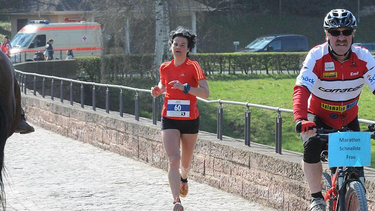 Halbmarathon Frauen 1. Maja Betz (SC Ostheim/WU18) 1:32,24; 2. Tanja Dietrich (TSV Hollstadt/W-40) 1:41,55; 3. Johanna Meyer (RV Viktoria Wombach/WHK) 1:42,16; 4. Carmen Fuhrmann (Team Klinikum Nürnberg/W-55) 1:47,39; 5. Karin Ebner (ohne Verein/W-50) 1:49,49.