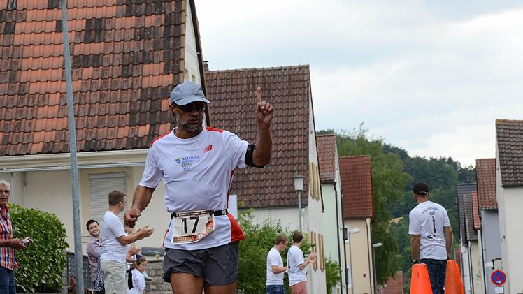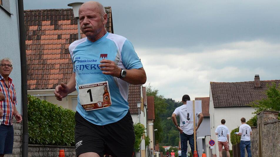 Joachim Föhr, der zum dritten Mal beim Schnitthepper-Run startete. Der 56-jährige Internist an der Klinik Bavaria geht bei seinen Patienten mit gutem Beispiel voran. Mit Kollegen wird jeden Montag gelaufen. "Immer ab 17.15 Uhr. Für eine Stunde oder etwa zehn Kilometer", sagt Föhr, der mit seinem Arbeitskollegen Burkard Pfister nach Nüdlingen gekommen war. Beide starten am Freitag auch beim Hambach Night-Run, "weil wir gerne die regionalen Läufe unterstützen".
