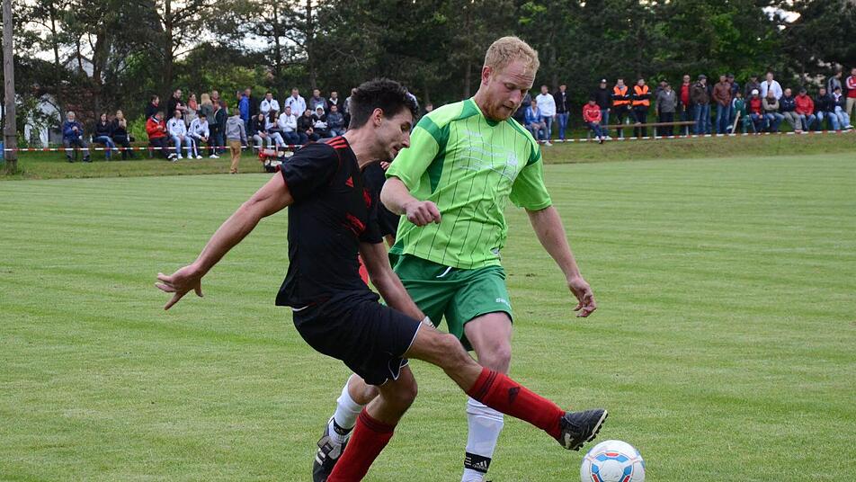 Die 400 Fans in Oerlenbach, darunter zwei lautstarke Fan-Blöcke, hatten ein für diese Liga höchst niveauvolles Spiel gesehen. Mit ebenbürtigen Ebenhäusern, die sich mit Platz zwei in der B-Klasse Rhön 3 dieses Entscheidungsspiel verdient hatten. "Ich fand, wir hatten sogar die besseren Chancen", sagte TSV-Spielertrainer Nunzio DeDonato, der als Libero aus der Kreisklassen-Elf ebenso aushalf wie Vitalij Eckstein und Keeper Daniel Dees. Aber auch die Grün-Weißen hatten sich verstärkt mit Mariano Ozorio und Christoph Baier. Der Landesliga-Aufsteiger will unbedingt die Liga wechseln, um der zweiten Garde ein höheres Niveau anbieten zu können. "Aber bei uns spielen auch viele mit, die wenig bis gar kein Training haben", weiß Sadowski um ein aktuelles Problem. Mit ein Grund, dass die Ebenhäuser von Beginn an gut im Spiel waren mit dem zu hoch angesetzten Volleyschuss von Thomas Tannhäuser und der Top-Chance für Patrick Schmitt, der nach einem Konter über Christian Engert freistehend am Tor vorbeischoss (22.). Die Garitzer hatten bis dato nur den von Daniel Dees parierten Freistoß von Arek Sadowski zu bieten. Gingen aber in Führung, weil Mariano Ozorio volley traf. Postwendend schlugen die TSV-Kicker zurück mit dem Abstauber von Bernhard Eschner, nachdem SV-Evergreen Günther Metz einen Engert-Schuss hatte prallen lassen.