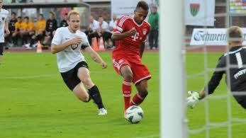 Vor grandioser Kulisse und bei bestem Fußballwetter pfiff Schiedsrichter Eduard Beitinger eine Partie an, die den Gast aus der Landeshauptstadt vor 6215 Zuschauern früh vorne sah. Weil Philipp Messingschlager das Spielgerät an Mitchell Weiser verloren und FCB-Goalgetter Julian Green dessen Zuspiel veredelt hatte. Keine zwei Minuten später hatte der Münchner Goalgetter nach einem Pass in die Tiefe von Edwin Schwarz FC-05-Keeper Christopher Pfeiffer erneut keine Chance gelassen mit einem ebenso wuchtigen wie platzierten Schuss. Dann fand auch Schweinfurt statt mit der erstklassigen und von Keeper Leopold Zingerle vereitelten Gelegenheit für Peter Heyer, der mit Tom Jäckel das Sturmduo der Schnüdel bildete, während Daniel Mache und Steffen Krautschneider das Flügelspiel beleben sollten. Es blieb beim frommen Wunsch.