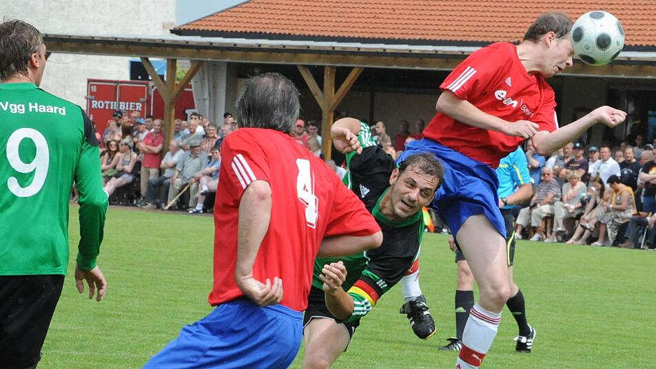 Nachdem Weichtungens Lukas Roth mit seinem Freistoß Alu getroffen, dann Pascal Hillenbrand blank stehend kläglich vergeben hatte, flog der Freistoß-Aufsetzer von Oliver Hillenbrand zum 2:2 ins Netz, ehe auch der Kopfball von Marc Baumgart saß. Weichtungens Knockout verhinderte Kaufmann, der mit Mühe einen weiteren Hillenbrand-Standard entschärfte. Da hatte der Kreisklassist längst Michael Denner nach vorne beordert, für den Altmeister Siegbert Kilian den Libero gab. Nachdem Christian Albert im Duell mit Andreas Kraus zugepackt hatte, musste sich Haards Keeper wenig später doch ein drittes Mal geschlagen geben beim unhaltbaren Schuss des jungen DJK-Strategen, der nach einem feinen Zuspiel von Stefan Denner und kurz darauf nach dem Flankenball von Michael Denner die Partie schon nach 90 Minuten hätte entscheiden können.