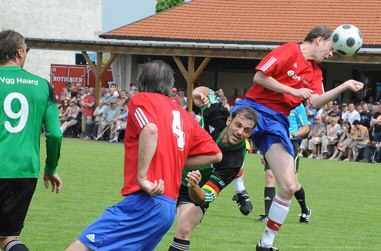 Verlängerung. Krämpfe. Kräfte und Konzentration ließen nach. Haards Pascal Hillenbrand setzte seinen Hochkaräter ebenso weit übers Tor wie auf der anderen Seite Stefan Denner. Dann war DJK-Schlussmann Kaufmann gefordert bei einem weiteren ruhenden Ball von Oliver Hillenbrand. Trotzdem fielen zwei Tore. Vorbei an Albert traf Simon Denner zum 4:3, und mit der allerletzten Aktion schlug Haard zurück durch Pascal Hillenbrand nach dem Freistoß-Pfostentreffer von Tom Schulz. Der souverän leitende Schiedsrichter Alexander Arnold ließ nicht einmal mehr den Anstoß ausführen.