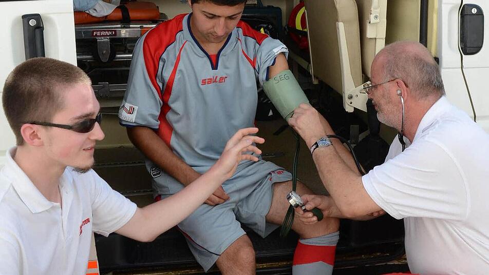 Erfreulich wenig zu tun hatten die Johanniter aus Schweinfurt in Sachen medizinischer Versorgung. Meistens mussten Urban Hart und Thomas Schmid die müden Muskeln nur abkühlen, ernsthafte Verletzungen gab es zur Freude der Veranstalter nicht. Die beiden ehrenamtlichen Johanniter hatten sich für das Masters-Turnier ebenso unentgeltlich zur Verfügung gestellt wie das Unparteiischen-Quartett der Schiedsrichter-Gruppe Bad Kissingen. Jürgen Büttner, Klaus Faulstich, Manfred Schmitt und Jürgen Nöth sorgten mit ihrer umsichtigen Spielleitung für einen reibungslosen Ablauf auf dem Feld. Stolze 50 Spiele auf Kleinfeld hatten die Schiedsrichter zu leiten.