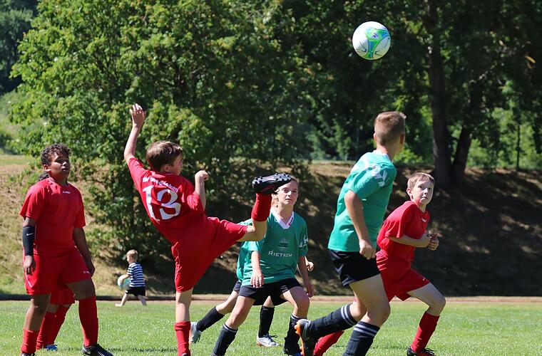 Bei hochsommerlichen Temperaturen und wolkenlosem Himmel am Fuße des Kreuzberges startete am Samstagnachmittag das Turnier der U11-Mannschaften, bei dem wiederum der FC Schweinfurt 05 zu den Favoriten zählte. Die SG Wildflecken war hierbei sogar mit drei Mannschaften am Start. Im Finale trug der VfL Sportfreunde Bad Neustadt mit 1:0 knapp den Sieg davon gegen den FC Coburg. Im kleinen Finale bezwang der FC Schweinfurt 05 die SG Wildflecken III recht deutlich mit 2:0. Auf dem fünften Platz landete die SG Thulba, die sich mit 2:1 gegen die SG Oberelsbach durchsetzen konnte. Den siebten Platz sicherte sich der VfR Stadt Bischofsheim durch einen 1:0-Sieg gegen die SG Oberleichtersbach. Im Spiel um Platz Neun kam es zum kuriosen Duell SG Wildflecken I gegen SG Wildflecken II, das die Erstvertretung mit 2:0 für sich entschied. Auf dem elften Platz landete der SV Römershag, der sich mit 3:2 gegen den FC 06 Bad Kissingen durchsetzte.