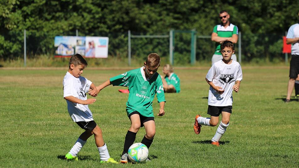 Am Sonntag präsentierten sich die U7-Junioren und die Hobbymannschaften aus der Marktgemeinde. Im Turnier der sieben U7-Mannschaften wurde der Modus auf "Jeder gegen Jeden" geändert. Zu einer Art Finale kam es im letzten Spiel aber doch noch, in dem sich die Dreiberg Kickers mit 1:0 knapp aber gar nicht so überraschend gegen die Würzburger Kickers durchsetzten und dadurch an der Tabellenspitze landeten.