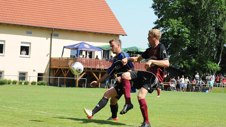 Auch das Rückspiel um den letzten freien Platz in der Bezirksliga Ost wurde zu einer klaren Angelegenheit für die Gäste, die sich neuerlich den Teutonen spielerisch überlegen zeigten. "Wir haben wieder gegen einen besseren Gegner verloren, das muss man einfach als Sportsmann anerkennen", sagte Reichenbachs Spielertrainer Marc Hartmann. Da war sein Kollege Hassan Rmeithi bereits sektnass, die mitgereisten Fans auf den Platz gestürmt und mit den Aufstiegsfeierlichkeiten beschäftigt. Die Steigerwäldler knüpften ohne ihren angeschlagenen Spielmacher Uli Konrad dort an, wo sie im Hinspiel aufgehört hatten. Ließen bei hochsommerlichen Temperaturen Ball und Gegner laufen und hatten durch Mohamed Rmeithi eine dicke Möglichkeit zum Führungstreffer (8.). Eine Minute später setzte Stefan Weiglein zu einem Alleingang an, traf aber nur den Pfosten.