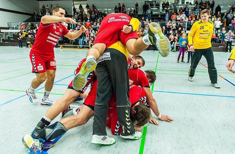 Jubel in der Halle und Trubel nach dem Abpfiff im Foyer der Bürgermeister-Goebels-Halle. Nach dem 14. Saisonsieg feierten die Gastgeber und ihre Fans nicht nur die Fortsetzung ihrer Erfolgsserie, sondern auch die vorzeitige Herbstmeisterschaft. "Das Wort "Herbst" wollen wir dann in sechs Monaten streichen", so der glückselige Franziskus Gerr, der in dieser Begegnung viel Spielzeit am gegnerischen Kreis erhielt und mit vier Treffern einen persönlichen Rekord in dieser Runde aufstellte.
