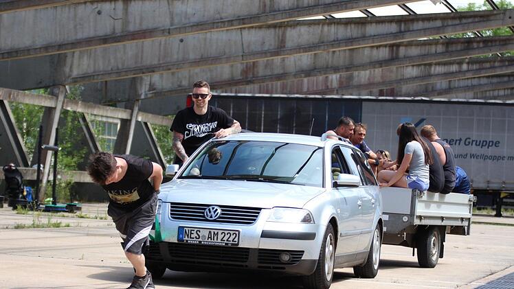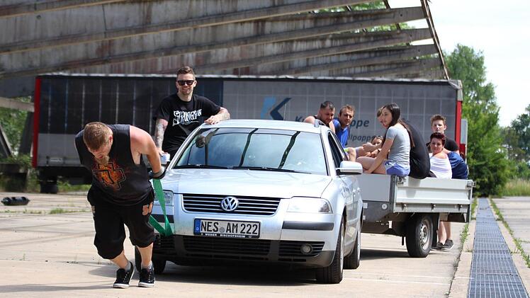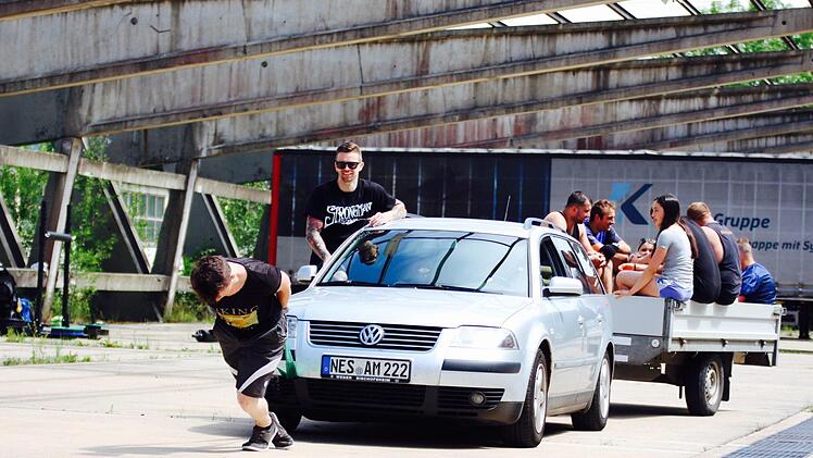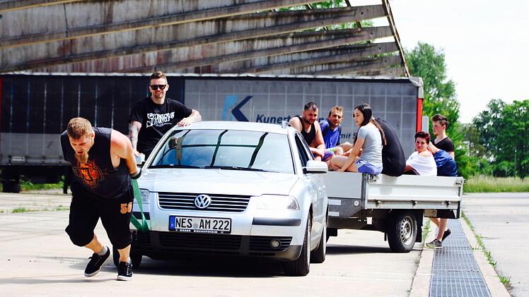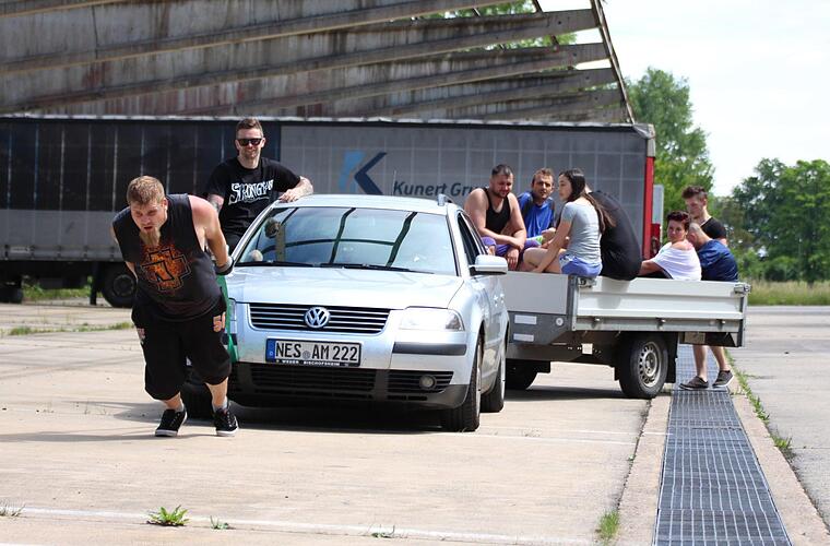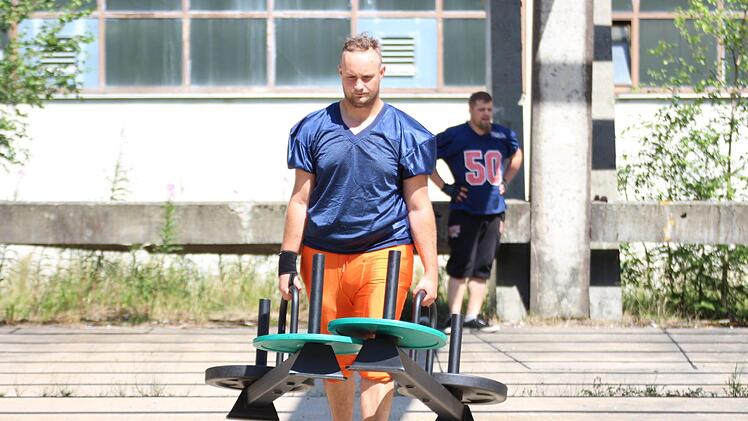 Überall in der Region wollen die Tigers Begeisterung für den American Football wecken. Einige junge Nachwuchsspieler haben die Tigers bereits, auch einen Jugendcoach. Zudem bildet man selbst Trainer und Schiedsrichter aus. Der Sport besteht allerdings nicht nur aus körperlicher Athletik, sondern auch aus jeder Menge Theorie. Das merken die Spieler zum Beispiel bei den Sitzungen, in denen es um Playbook und Regelkunde geht. "Freedom, Family, Love" (Freiheit, Familie, Liebe) - für diese drei Grundsätze kämpfen die Tiger, natürlich mit passenden orangen Helmen. Die mussten extra lackiert werden, da es sie im Handel nicht in dieser Farbe gibt. Doch nicht nur American Football ist eine Wissenschaft für sich, auch das Strongman-Training verlangt vom Coach fundiertes Wissen und eine ausgeklügelte Technik. Bei vielen Disziplinen wird sowohl im Oberkörper als auch im Unterkörper enorme muskuläre Ausdauer benötigt. "Ein Auto zu ziehen, sieht spektakulär aus. Aber mit der richtigen Technik ist das gar nicht so schwer", sagt Helfrich. Und so ließen es sich die Mittelstreu Tigers nicht nehmen, einen Kombi samt Anhänger durch das ehemalige Kasernengelände zu ziehen. Geschafft waren die Footballer nach der Trainingseinheit zwar, aber auch zufrieden mit dem Erreichten. Eine anstrengende Premieren-Saison erfordert eben auch kreative Trainingsmethoden.