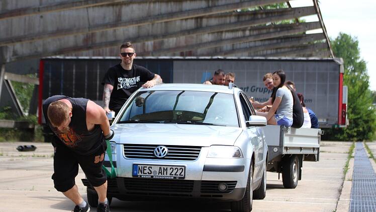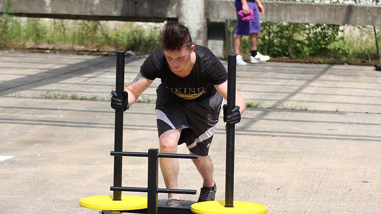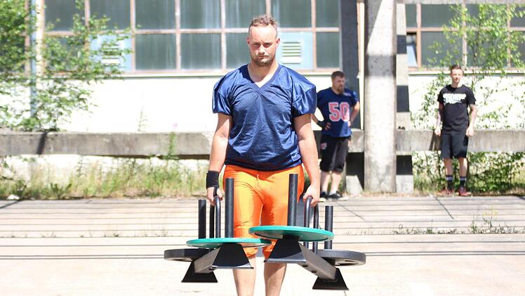 Die majestätische Raubkatze brüllt längst auch in der Rhön. Im Mai dieses Jahres starteten die American Footballer des TSV Mittelstreu, die sich selbst "Mittelstreu Tigers Rhön-Grabfeld" nennen, in der Aufbauliga. Inklusive Testspiele stehen deutlich mehr als zehn Partien in diesem Jahr auf dem straffen Terminplan. Coach Christopher "Maniac" Schröder jagte seine Schützlinge schon im Winter bei Wind und Wetter über den Mittelstreuer Sportplatz, um das Team bis zum Saisonauftakt fitzubekommen. Auch jetzt, längst im Spielbetrieb des bayerischen Football-Verbandes angekommen, spielt die körperliche Fitness eine große Rolle. Und so kamen die Mittelstreuer Tiger an diesem Wochenende in die ehemalige Rhönkaserne nach Oberwildflecken, um sich dort unter fachkundiger Anleitung von Fitnesscoach Florian Helfrich einem spektakulären Strongman-Training unter freiem Himmel zu stellen. "Das Ergebnis von Strongman-Training ist einsetzbare Kraft, die sich in jeder Form von Kontaktsportarten wie Fußball, Hockey oder auch American Football als nützlich erweisen wird", erklärt der Wildfleckener Coach Helfrich. "Wahres Functional-Training kann nur erreicht werden, wenn ein anpassbarer Widerstand benutzt wird und gleichzeitig sportspezifische Bewegung ausgeführt werden."
