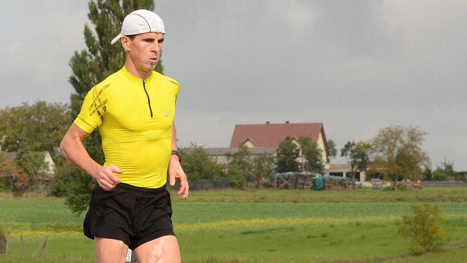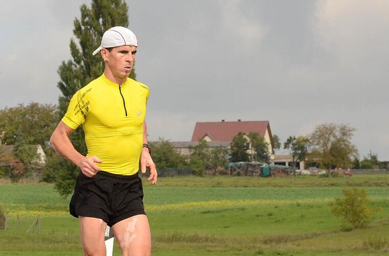 Im Nirgendwo des Wern-Tals geht der Zeigefinger zum Mund. Markus Uns leber will jetzt seine Ruhe haben. Will sich konzentrieren auf den finalen Abschnitt. Über 29 Kilometer führt die letzte lange Laufeinheit mit Start und Ziel in Wülfershausen. Über Altbessingen, Büchold, Heugrumbach, Arnstein und Schwebenried. Schotter und Asphalt unter den Füßen, die beeindruckend trainierte Oberschenkel tragen. Unter vier Minuten läuft der 39-Jährige den Durchschnitts-Kilometer. Baut verschiedene Tempowechsel ein. Kontrolliert mit dem regelmäßigen Blick auf die Uhr. Und hadert später. "Ich bin etwas zu schnell angegangen. Den zu hohen Puls bekommt man dann nicht mehr runter. Das war schon ziemlich hart." Pausen verbietet der Ehrgeiz. Für etwas Abkühlung sorgt allein das nach oben geschobene T-Shirt.
