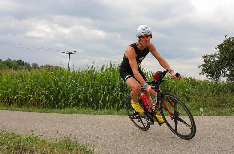 Tradition interessiert auch Markus Unsleber. Und eine Rechnung mit dem Breisgau-Triathlon war irgendwie auch noch offen für den gebürtigen Langendorfer. "Nach 2011 bin ich zum zweiten Mal in Malterdingen am Kaiserstuhl an den Start gegangen. Damals absolvierte ich das Rennen im Rahmen der Hawaii-Vorbereitung und hatte einen miesen Tag erwischt. Diesmal wollte ich es auf jeden Fall besser machen", sagt der 40-Jährige, der noch als 39-Jähriger startete bei der 25. Auflage der zweitgrößten Triathlon-Veranstaltung in Baden Württemberg mit über 200 Teilnehmern auf der Mitteldistanz. Stars der Szene wie Hawaii-Sieger Faris Al Sultan oder der Australier Pete Jacobs fehlten zwar in diesem Jahr, dennoch war die Konkurrenz groß. "Eine Top-3-Platzierung hatte ich mir trotzdem zum Ziel gesetzt", sagt Unsleber, der den anspruchsvollen, weil bergigen Wettkampf durch den Schwarzwald mit 1020 Höhenmetern gut begann mit einer Schwimmzeit von 28:51