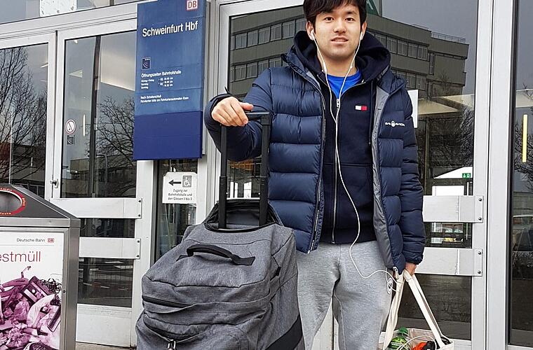 Mizuki Oikawa am Schweinfurter Bahnhof: Es war seine letzte Abreise als Spieler des TSV Bad Königshofen.  Foto: Rudi Dümpert